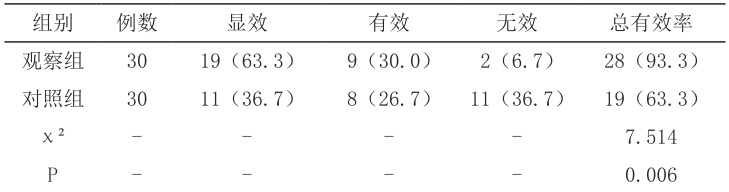 观察组疾病控制有效率高于对照组,差异有统计学意义( (P<0.05 )。具体数据见表1。
