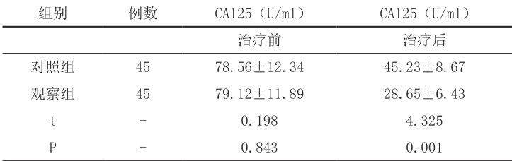 2.3 两组治疗前后 CA125 水平比较