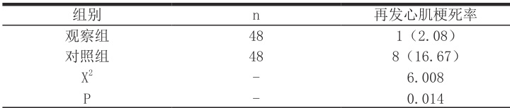 表 2 组间再发心肌梗死率对比 [n(%)]