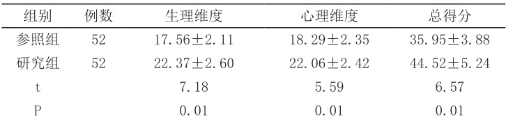 研究组患者在生理维度、心理维度的 GCQ 评分均高于参照组 (P/0.05) ),详见表2。研