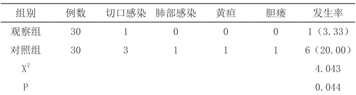 观察组并发症发生率低于对照组 P<0.05 ,如表2。