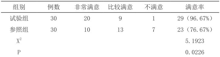 研究对象:2023.1-2024.12 期间肛肠外科接收的60 名护理实习生,采取双盲法分成两组,参照组( ⋅n=30 )中有27名女性,3名男性,年龄区间为 19~23 岁,年龄均值为( 21.32±0.84 )岁。试验组( ⋅n=30 )中有 28 名女性,2 名男性,年龄区间为 19~24 岁,年龄均值为( 21,39±0.87 )岁。通过统计学软件分析上述资料, P>0.05 ,组间比较无统计差异。