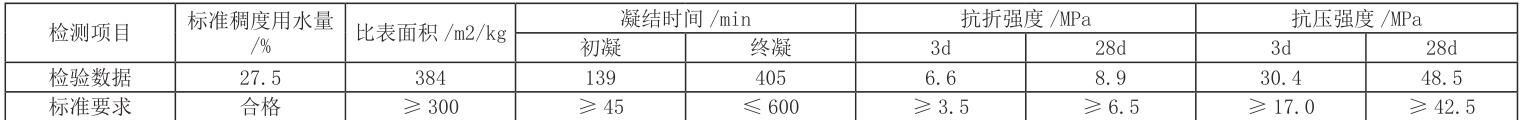 水泥:42.5普通硅酸盐水泥,天津金隅水泥厂,详细性能见表1。