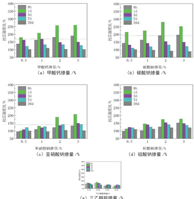 图1掺不同早强剂的混凝土抗压强度比