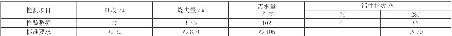 表 2 粉煤灰的各项基本性能