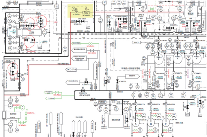 另外,在凝结水母管上还布置了一条再循环管道,当母管通过 DCS-027VA调节流量后,多余的流量便需要流经再循环管道回到凝汽器。