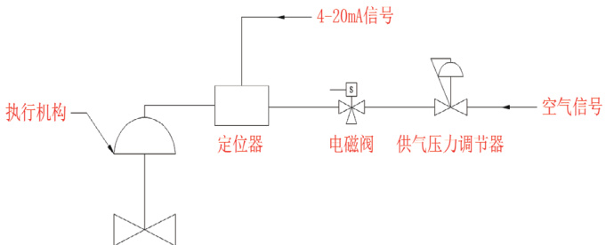 2、在低负荷(小于 50% 负荷)工况下,将 DCS-046VA 的控制开关打到关闭档位,使得电磁阀带电,压缩空气通过阀门定位器后进入气动执行机构;而阀门定位器的气源输出通过主控室输出的 4-20mA 进行控制从而控制阀门开度。单纯由手操器调节阀门定位器进行控制,切除 DCS-046VA 的流量自动联锁全开逻辑;