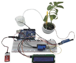 这个环节主要是学生动手操作: 组进行合作搭建 使用杜邦线将各元器件连接起来;使用linkboy图形化编程仿真软件编写程序; 入绿植的土壤里,最终实现以下功能:检测到土壤干燥时, 各种问题,如传感器接线接口按要求连接问题,不断调试程序 “模仿搭建”到“自主改进”,培养学生真实问题解决能力。 过程中,引导学生“手脑并用”,螺旋上升,学生既感受到传统劳动的艰辛, 又启发了创新思维,促进学生核心素养的发展[3]。如图1 所示。