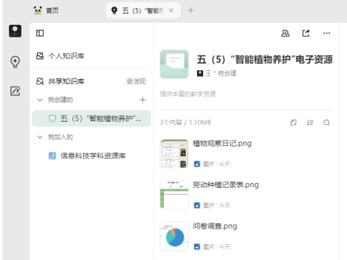 以“智能植物养护”为例,在进行课堂教学之前对 150 学生做问卷调查,在劳动中加入新技术,了解学生的认知和需求,为课程的设计提供依据;教师提供智能控制系统搭建视频素材,有助于学生认知框架的建立;教师设计的种植记录表、学习单有助于学生学科知识的理解和运用;学习过程中设计的观察日记,汇总的“电子劳动档案袋”强化过程性记录,有助于教师实时动态追踪学生的成长;linkboy 图形化编程仿真平台,模拟真实场景,带给学生即看即得的感受;构建资源知识库平台:ima.copilot,促进资源共享,教师可以方便地获取和使用教学资源,学生可以利用资源进行自主学习,家长们可以传送一些养护过程中收获的电子照片、自然笔记、劳动感悟给教师,教师将这些数据整理成电子档案进行保存,教师引导学生建立自己个性化的“电子劳动档案袋”。这些丰富的数据既让学生看见劳动过程中的成长,更重要的是为教师对学生进行全面评价提供了真实而客观的依据,为后续改进提供方向[4]。如图2 所示。