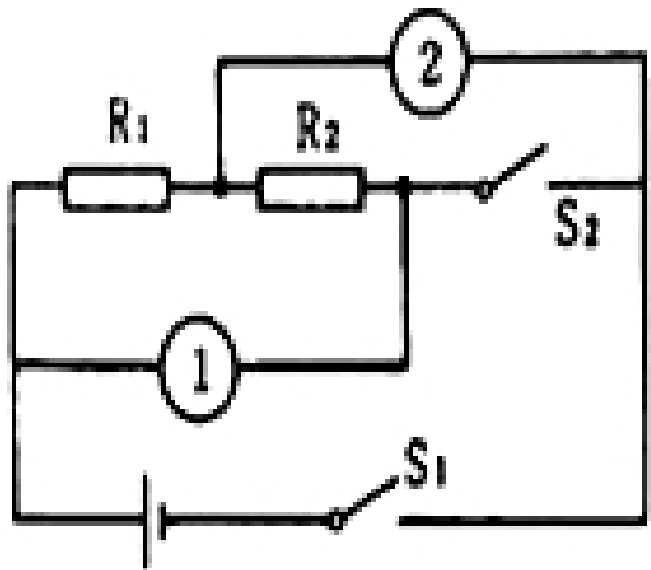 第二次:S₁、S₂ 均闭合, ①② 为电压表,R₁ 与R₂ 串联。