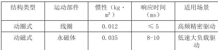 通过对比动圈式与动磁式结构特性(如表 1 所示),选择动圈式方案:运动部件为线圈(质量仅 0.8kg) ),定子为永磁体与磁轭,有效降低惯性(动磁式惯性约为其 3 倍),提升响应速度。