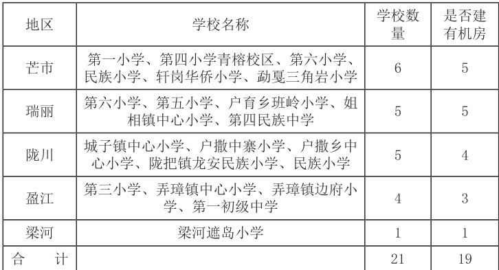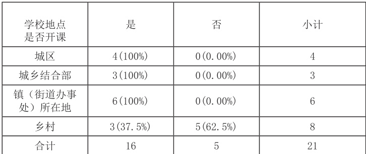 为了对地区的信息技术课程开展情况进行了解,2024 年 12 月间作者对地区的 21 所中小学进行了信息技术课程的开设涉及的师资力量、教学设备、课程资源适配性情况进行了问卷调研 , 涉及调查学校如表 1 所示,问卷涉及的主要问题及调查结果如表2 至表5 所示