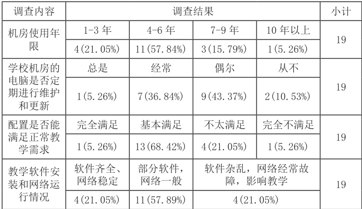 表1 涉及调研学校及机房建设情况