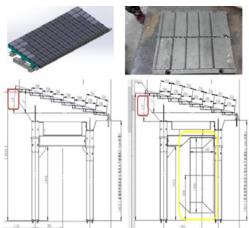 新型固定斜坡采用 TCH 型急冷模块(宽 4.8m,长 2.2m⟩ ),落位时需放置于新更换的支撑立柱上,通过合理使用补偿垫片进行分步找平。核心控制指标为推料板与水平篦床耐磨板的间隙,需严格控制在 3-5mm ,通过塞尺逐点测量调整,确保间隙均匀。此外,需将下料斜坡周围托砖板整体下移至低于改造后斜坡最高点的位置,焊接固定后再次复核高程,避免与斜坡组件发生干涉,为后续浇注料施工预留空间 [2]。