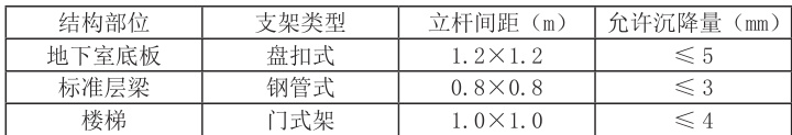(1)地下室底板采用满堂盘扣式支架,立杆间距 1. 2m×1.2m ,步距 1.5m,基础采用20 混凝土硬化(厚度