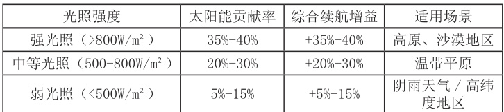 表3 :双能源系统在不同光照条件下的续航增益