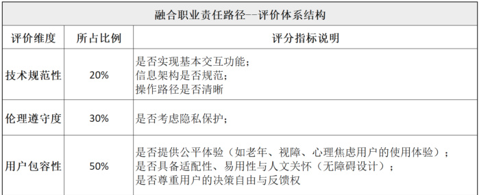 学生实践作品的评价中,“技术规范”和“伦理反思”被纳入到了评分体系。教师依据学生提交的“设计伦理说明文档”和作品,对界面设计是否在数据保护、无障碍、用户尊重等方面的进行考量与设计进行评价。评价体系的编写参考了《个人信息保护法》《信息无障碍设计规范》及 WCAG 国际标准,形成了覆盖功能、责任与体验多个维度的综合评价体系。