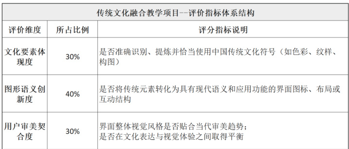 图4 :传统文化与界面设计融合教学项目评价指标体系