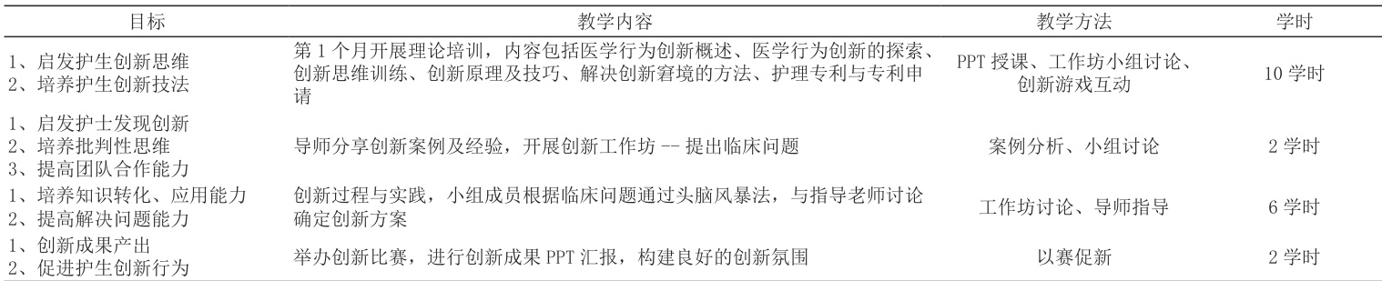 表1 CDIO 模式工作坊的护理创新培训教学方案