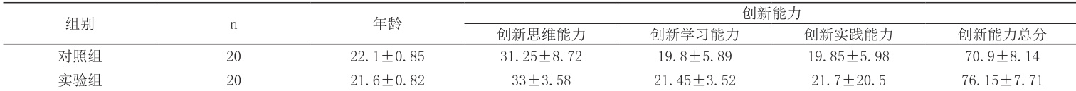 表3 培训前两组护生创新能力比较(分,x ± s )