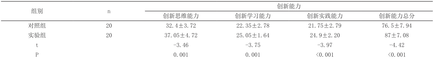 表5 培训后两组护生创新能力比较(分, x ± s )