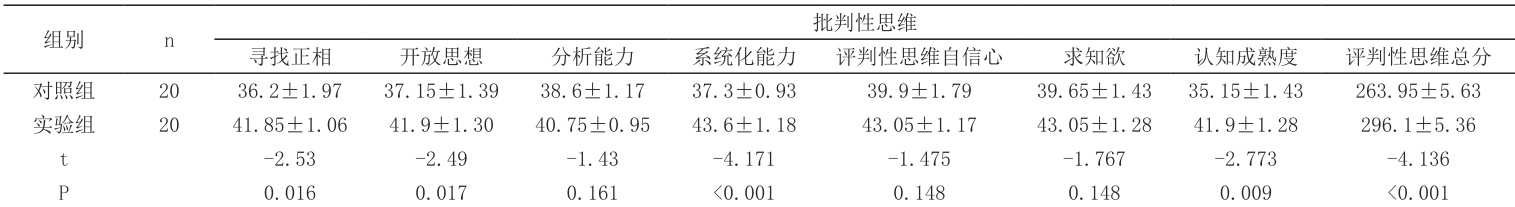 2.3 培训后两组护生批判性思维能力比较,见表6。