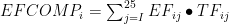 其中,EFCOMPi 表示i 类机动车的排放因子 (g/km) ); EFij 表示第i 类机动车j 车龄的排放因子,其受到速度、油品质量、燃油参数、维修保养情况等因素影响; TFij 表示第i 类机动车j 车龄行驶里程在总里程的占比。