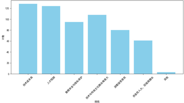 尽管有初步探索,但科技与文旅产业的融合仍停留在表面,未实现深度渗透。例如,文化元素在旅游产品中的融入尚显薄弱,未能充分体现“文化铸魂、旅游增色”的协同效应。文旅产业缺乏整体规划,资金投入不足,导致科技创新项目难以大规模推广。部分高校和科研机构的成果转化效率较低,未能有效转化为实际生产力。目前主要依赖基础技术,如 AI 和物联网的初级应用,尚未涉及虚拟现实(VR)、增强现实(AR)等前沿技术,限制了体验式旅游产品的开发。