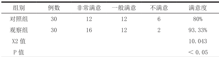 1.3.2 对两组患者护理满意度进行对比,采用自制问卷获得相应数据,总分 100 分, ⩾80 为非常满意,