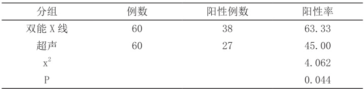 表1 双能X 吸收仪与超声测定结果比较 [n(%)]
