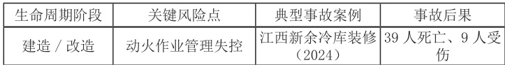 表:冷库全生命周期主要风险点与典型事故关联分析