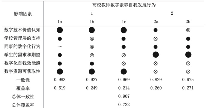 表1. 高校教师数字素养自我发展行为充分条件分析