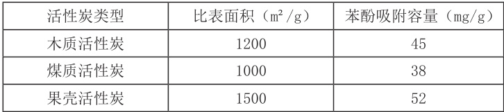 物理处理工艺主要是利用物理作用,将污水中未被溶解而处于悬浮状态下的污染物进行分离、回收。其中吸附法的适用范围很广,活性炭是一种常见的吸附剂,对于许多难降解有机物具有很好的吸附效果。不同类型活性炭对苯酚的吸附容量存在差异(见表1)。