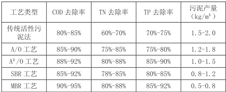 不同工艺对污染物的去除效能存在显著差异,具体数据如下表所示