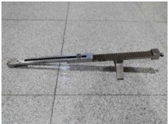 针对上述问题,本研究设计了一种大齿轮注油扶正防位移装置,通过长端工装与短端工装的协同作用,实现对齿轮位移的精准抑制。其中,长端工装由定位法兰盘、高强度合金钢支撑杆、精密微调螺栓及 V 型支撑架组成。定位法兰盘采用过盈配合方式(过盈量 0.03-0.05mm )固定于跳动检测仪顶针座,确保工装基准面与检测仪轴线严格同轴。支撑杆两端分别与齿轮齿毂端面及法兰盘端面接触。