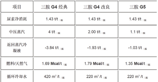 G5 技术与尿素装置的联产更加方便,特别是与 CO2 汽提法尿素装置联产时。只有一股高温高压的富甲铵液直接进入尿素反应器,无需再进行冷凝和检查尿素现有设备情况,从而节省了冷凝设备和总水量,提高了氨碳比。