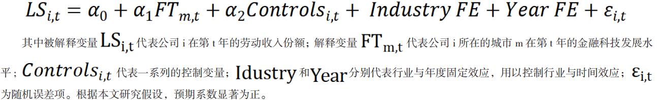 其中被解释变量 代表公司i 在第t 年的劳动收入份额;解释变量 代表公司i 所在的城市m 在第t 年的金融科技发展
