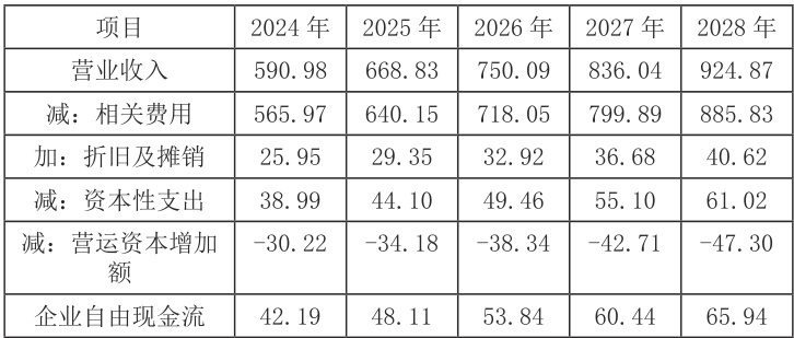 表 2 2024-2028 年 Y 公司自由现金流预测结果