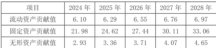 表 3 2024-2028 年 Y 公司相关资产贡献值预测结果