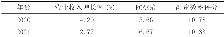在绿色金融政策背景下,传统融资效率指标已无法充分反映中小企业融资质量,本文据此构建以产出为导向的复合型评价体系。基于“投入—产出”逻辑,选取营业收入增长率(RGR)与资产回报率(ROA)作为核心指标,分别赋权0.6 与0.4,构建综合融资效率评分(FE):