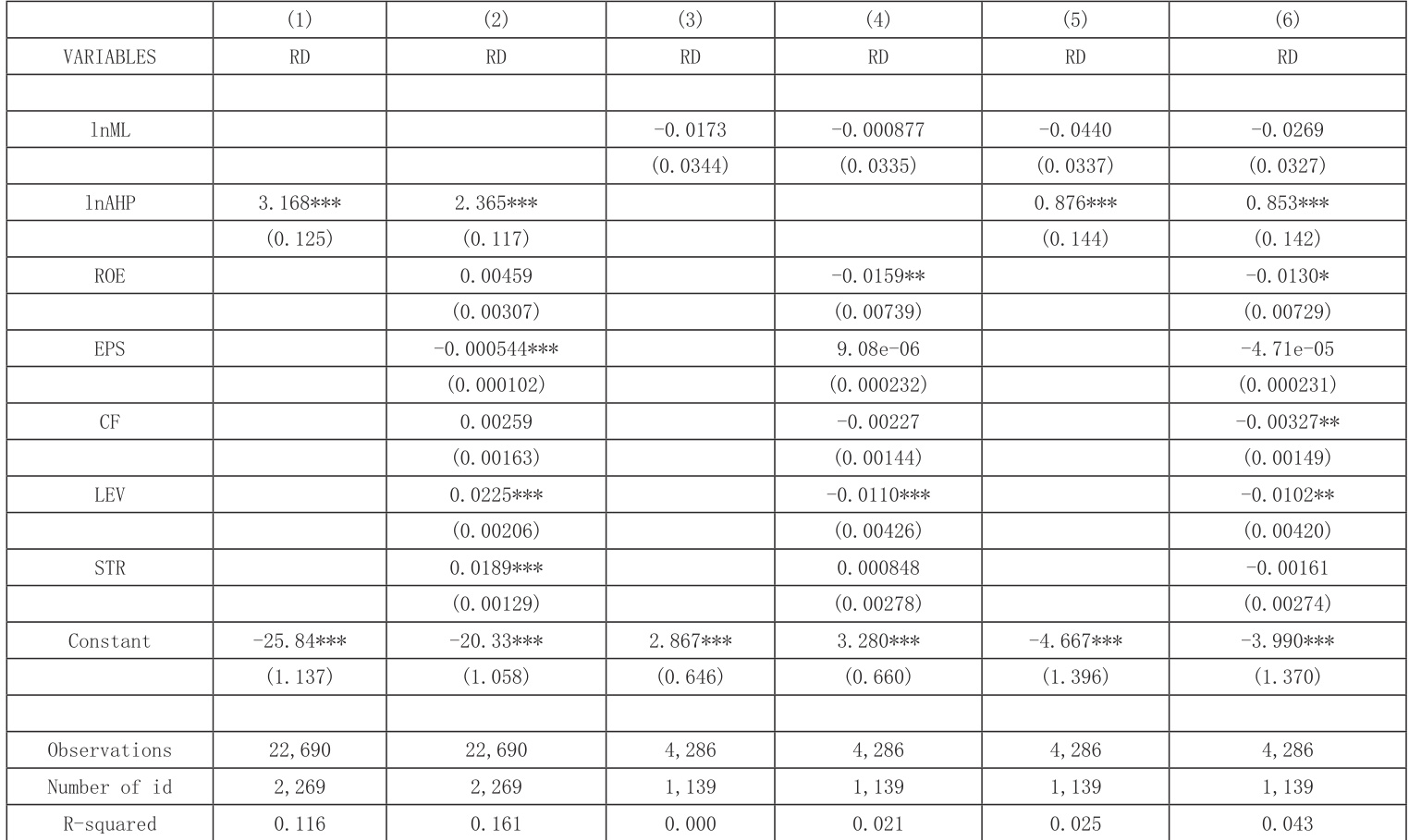 RDi,t=β0+β1⋅LnAHPi,t(LnMLi,t)+δ⋅Controli,t+αi+γt+εi,t