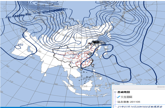 图 1 2021 年 7 月 14 日 20 时 500hPa 高度场
