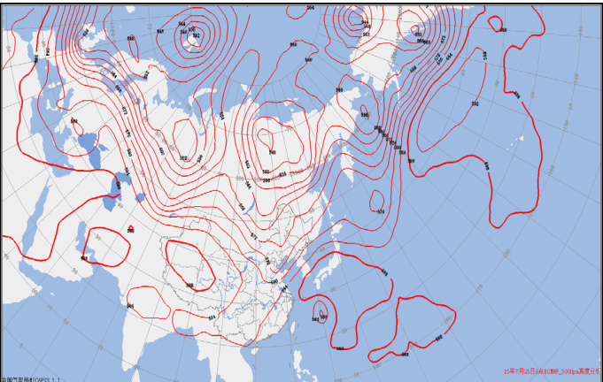 图 3 2015 年 7 月 25 日 08 时 500hPa 高度场