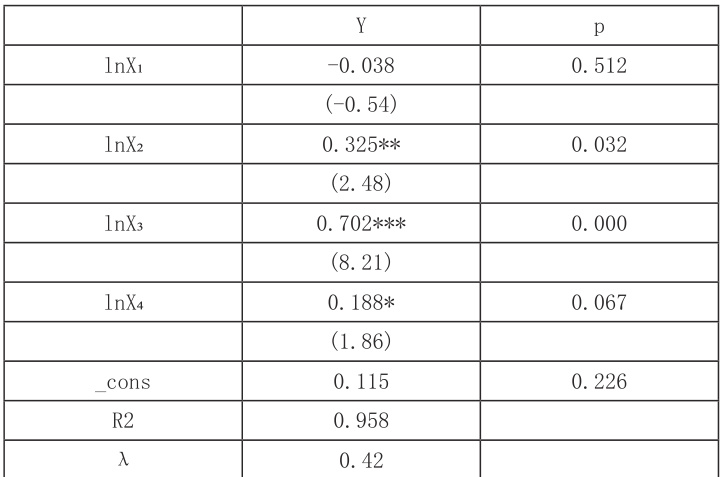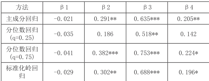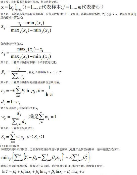 其中,Y 表示新能源动力电池产业转型综合指数。X1、X2、X3、X4 分别表示数字信息化基础设施指数、数字经济产业发展指数、数字创新能力指数及数字经济应用指数。岭参数是用 5 折交叉验证,选择使预测误差最小的 λ 值。通过主成分回归和分位数回归进行稳健性检验。