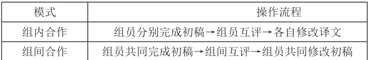 在学生方面,首先应树立自主学习的主体意识。在 AIGC 的大环境下,部分学生表现出对 AI 的过度依赖,缺乏独立思考和主动实践的倾向。例如,在多译文对比教学或译后编辑训练中,若学生不主动完成人工翻译,而是完全依赖机器译文进行对比,甚至将编辑修改的任务也交由 AI 完成,那么从长远来看,这种做法将严重阻碍上述教学方法的开展,同时也影响学生个人翻译能力的提升,甚至影响批判性思维、创造性思维的培养。其次,学生还应该配合教师的教学安排,其中最关键的是要配合小组合作教学模式。以本研究为例,小组合作教学模式如表 1 所示,分为组内合作和组间合作两种具体操作模式,在借助 AI 工具的前提下,组员、组间如何配合完成初稿、互评、修改。在实际教学过程中,两种模式交替进行完成不同的翻译任务。
