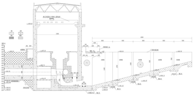 尾水渠由闸门控制段和反坡段组成,长约 40m ,闸门段长 6m ,尾水渠采用4 扇尺寸为 6m×3m (宽 × 高)平板闸门控制,门机起吊;反坡段与尾水出口以1 :4 反坡相接,长 34m⨀ 。