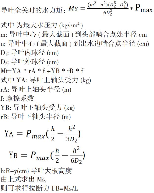 MS: 为导叶全关时的水力矩Mt :摩擦力矩MS 的符号是变化的,使活动导叶关闭方向运动的水力矩取 + ,使活动导叶开启方向运动的水力矩时取 -。 [3]