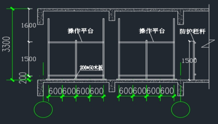(1)采用钢管搭设操作架,四周需要搭设防护栏,碳纤维加固操作架及临时防护如图 1 所示。