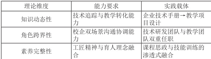 能力本位教育(CBE)理论,突出以职业能力图谱反推教师素质模型,如德国职业教育教师培训框架中规定每2 年更新一次“能力护照”,记载了技术技能升级的过程;情境学习理论可以设置构建“真实性学习情境”,如武汉华夏理工学院的教师们在利用比亚迪的真实故障案例库建立相应实训模块,把课堂搬进车间,形成认知闭合。