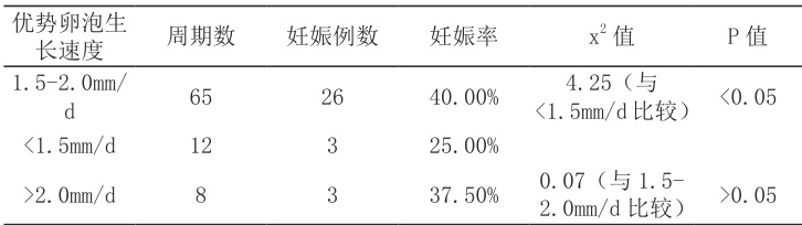 表4 不同优势卵泡生长速度与妊娠率的关系
